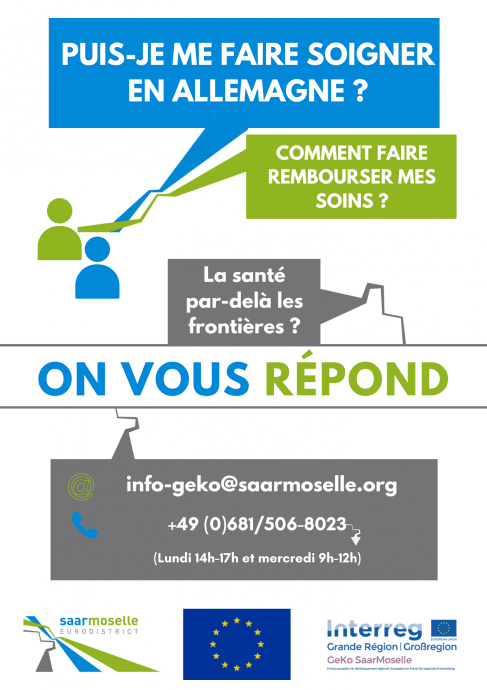 GeKo SaarMoselle : Structurer et développer la coopération sanitaire transfrontalière sur l'espace Sarre-Moselle », co-financé par l'Union Européenne au travers du programme Interreg VA Grande Région et mené par l'Eurodistrict SaarMoselle, vise à structurer et à amplifier la coopération entre les acteurs de la santé de part et d'autre de la frontière.